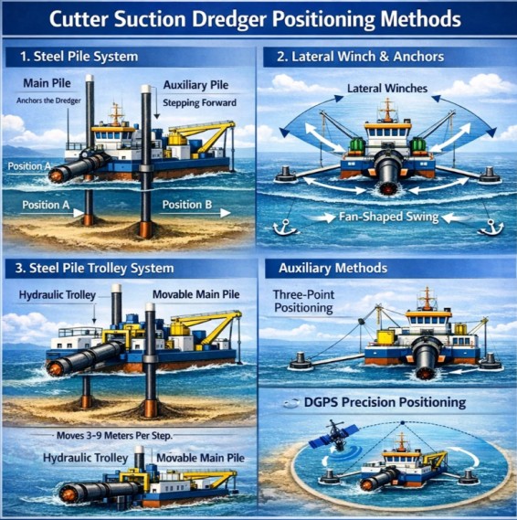 The cutter suction dredger does not move randomly during operation, but rather oscillates rhythmically like a compass.