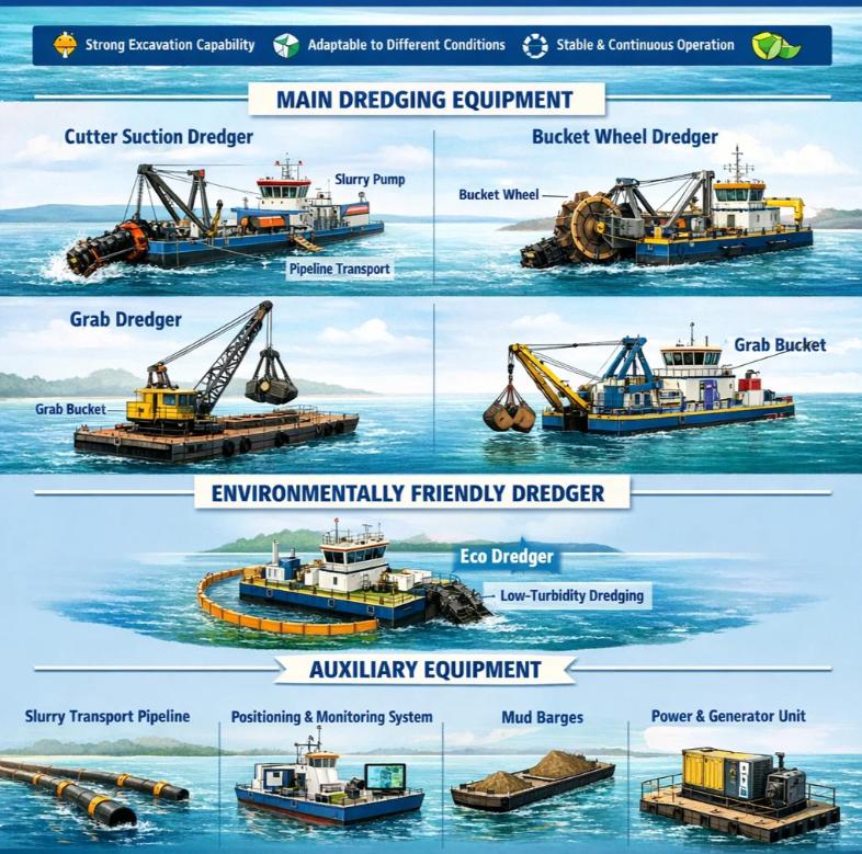 Based on these, dredging projects will configure different types of dredging equipment according to project scale and construction objectives.