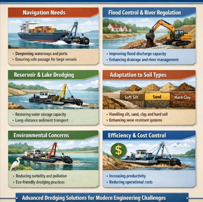 Different dredging projects face significant differences in soil types, including silt, sand, clay, and even hard sedimentary layers. The diversification of engineering requirements has driven continuous upgrades in the structural design and functional configuration of dredging equipment.