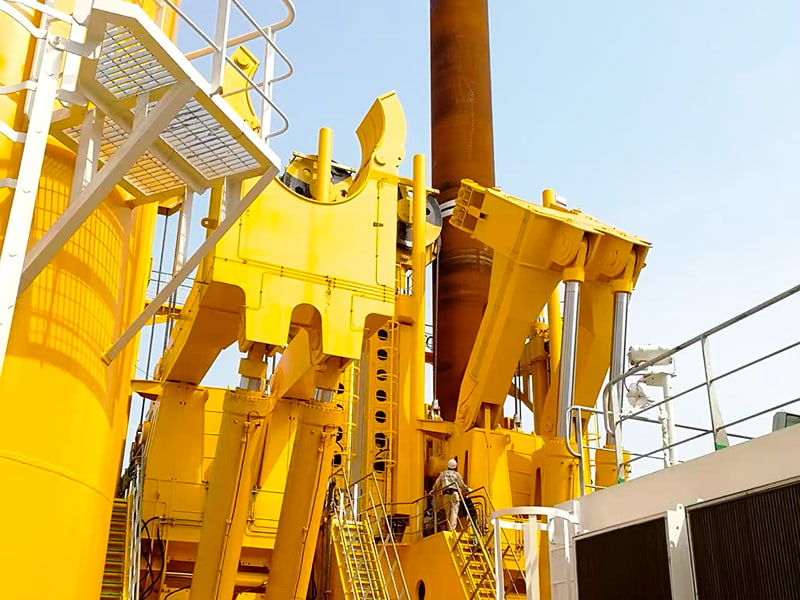 During offshore operations, the pile system can offset the effects of waves and tides, reduce vessel sway, and improve construction accuracy.