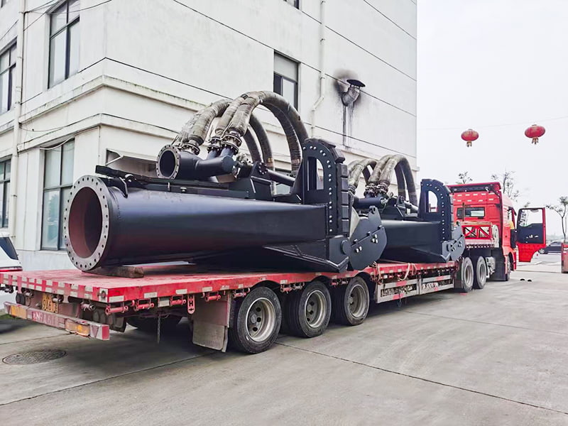 Sanyang dredge draghead, which is used by the trailing suction hopper dredger, is a steel structure that is connected to the dredger by a suction pipe. Supported by the gantries and by using hydraulic winches, the dredge drag head and suction pipe are let down onto the sea bottom in order to suck a mixture of water and sand.